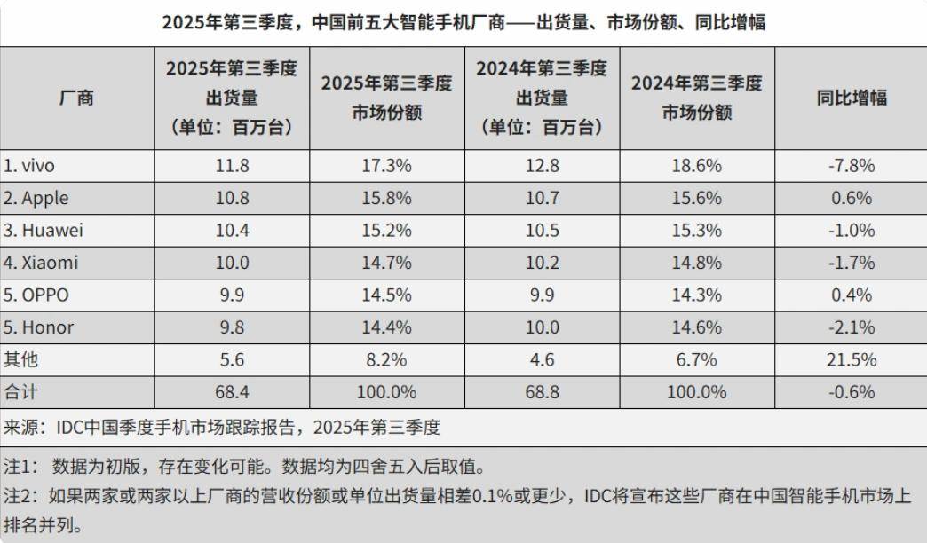 可以看到目前中国手机市场第一梯队各家的差距并不大,荣耀手机与vivo的差距仅200万台左右。