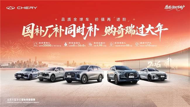 半岛体育官方网站-百家乐棋牌返水最高平台 2025最新元旦假期已至,2026年新年正适合开新车。同时,新一年的国补也已如期而至,报废旧车并购置2.0升及以下排量燃油乘用车,可享车价10%补贴,至高1.5万元;置换购车并选择2.0升及以下排量燃油车型,可享车价6%补贴,至高1.3万元,利好中小排量经济型车型,正是选购1.6T冠军动力的第五代瑞虎8的好时机。在新年来临之际,奇瑞特别推出感恩全球1800万用户的 “国补厂补同时补 购奇瑞过大年”新春特别活动,至高1.5万元的国补叠加至高2万元的厂补,选购第五代瑞虎8至高补贴3.5万元,还有至高8万元36期0息、终身免费质保等福利,助力大家用最划算的价格,把第五代瑞虎8开回家过新年!