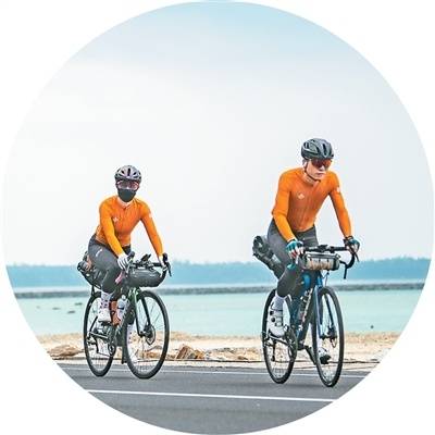 1月3日,骑行爱好者在海南环岛旅游公路琼海市潭门镇牛奶海路段骑行观光。 蒙钟德摄(人民图片)