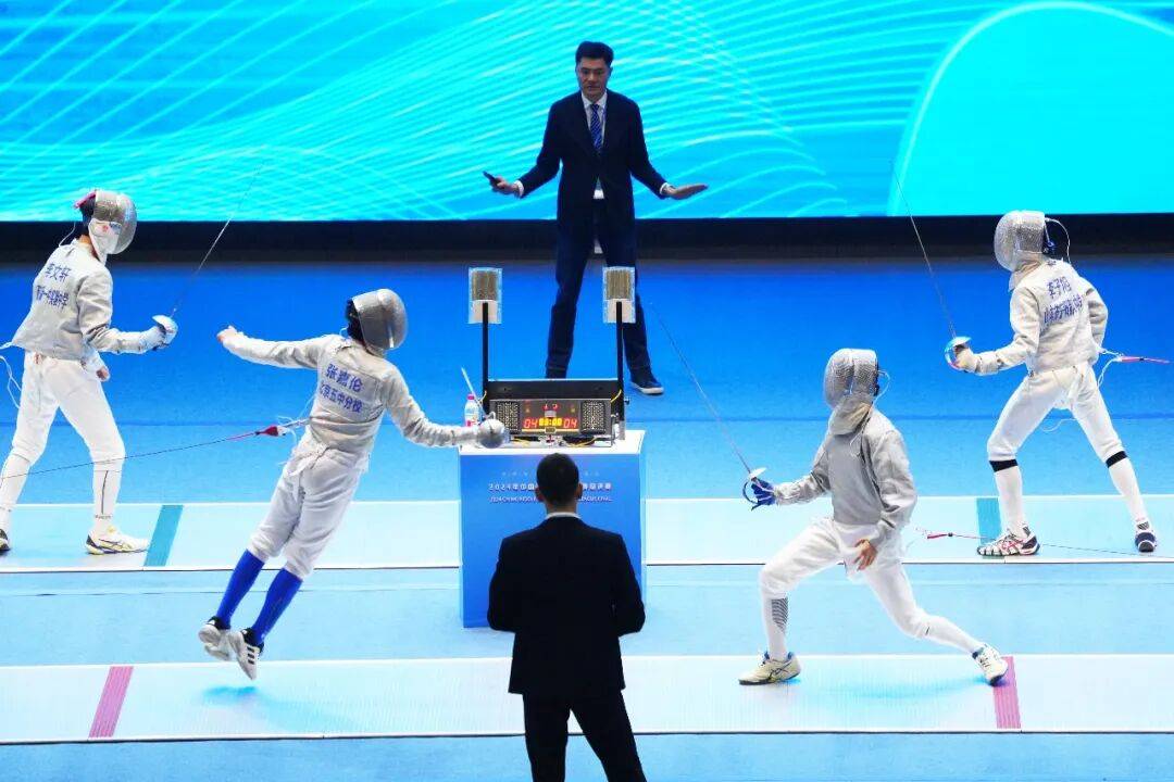 1月17日,东莞虎门外语学校,参加中国中学生击剑联赛总决赛的选手们正在激烈对抗。本次赛事以“逐梦青春,剑韵凌云”为主题,分高中组、初中组,涵盖了男子与女子花剑、重剑、佩剑三个剑种。该赛事由教育部中国学生体育联合会主办,吸引来自全国19个省、市的157支参赛队伍的800多名运动员、教练员参赛。