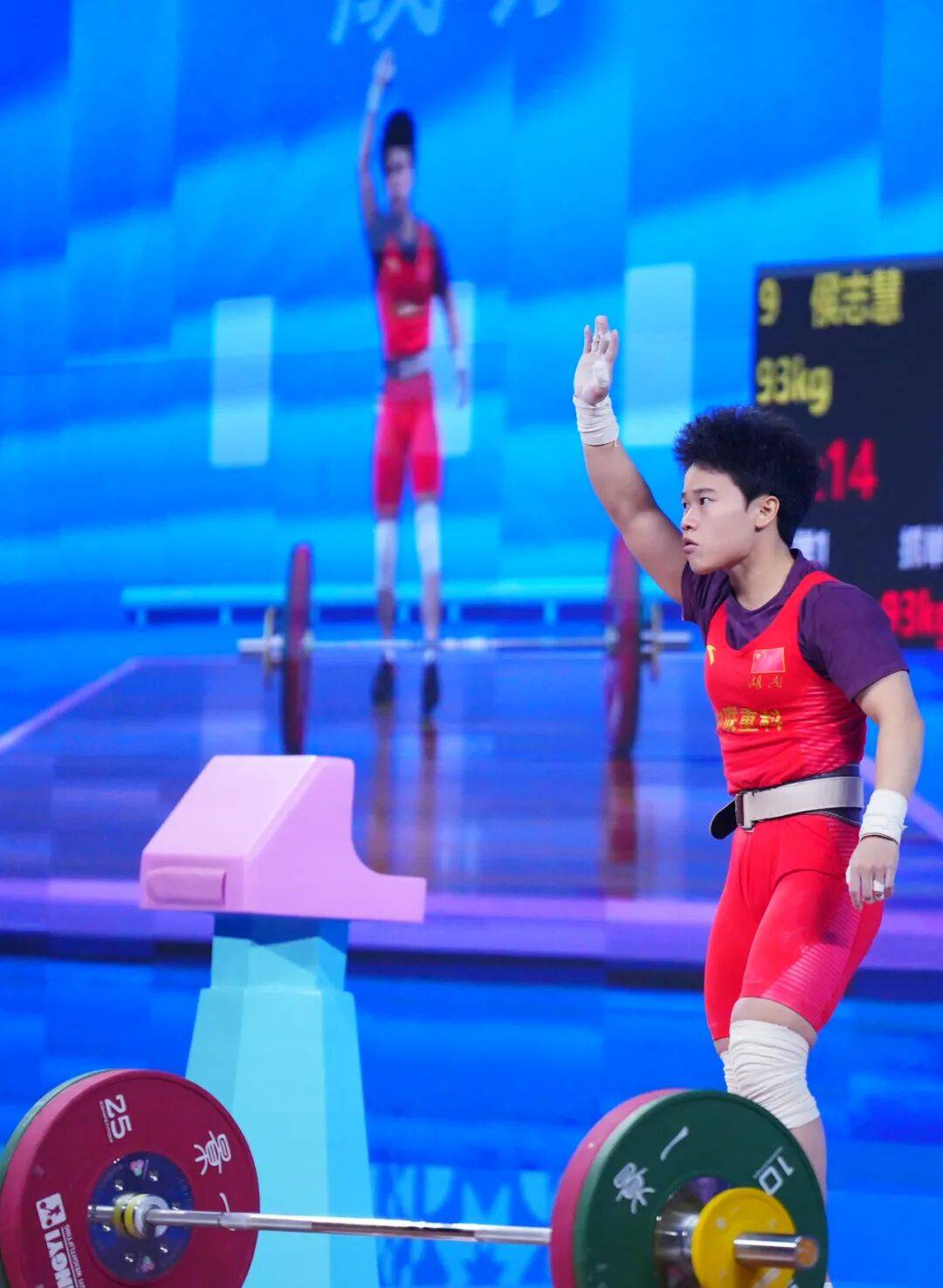 女子49公斤级举重金牌的巴黎奥运会冠军侯志慧想向观众挥手致谢。当晚举行的第十五届全运会49公斤级女子举重比赛中,巴黎奥运会女子49公斤级冠军侯志慧战胜了世界冠军蒋惠花,最终以总成绩203公斤获得该项目的冠军。少年壮志不言愁