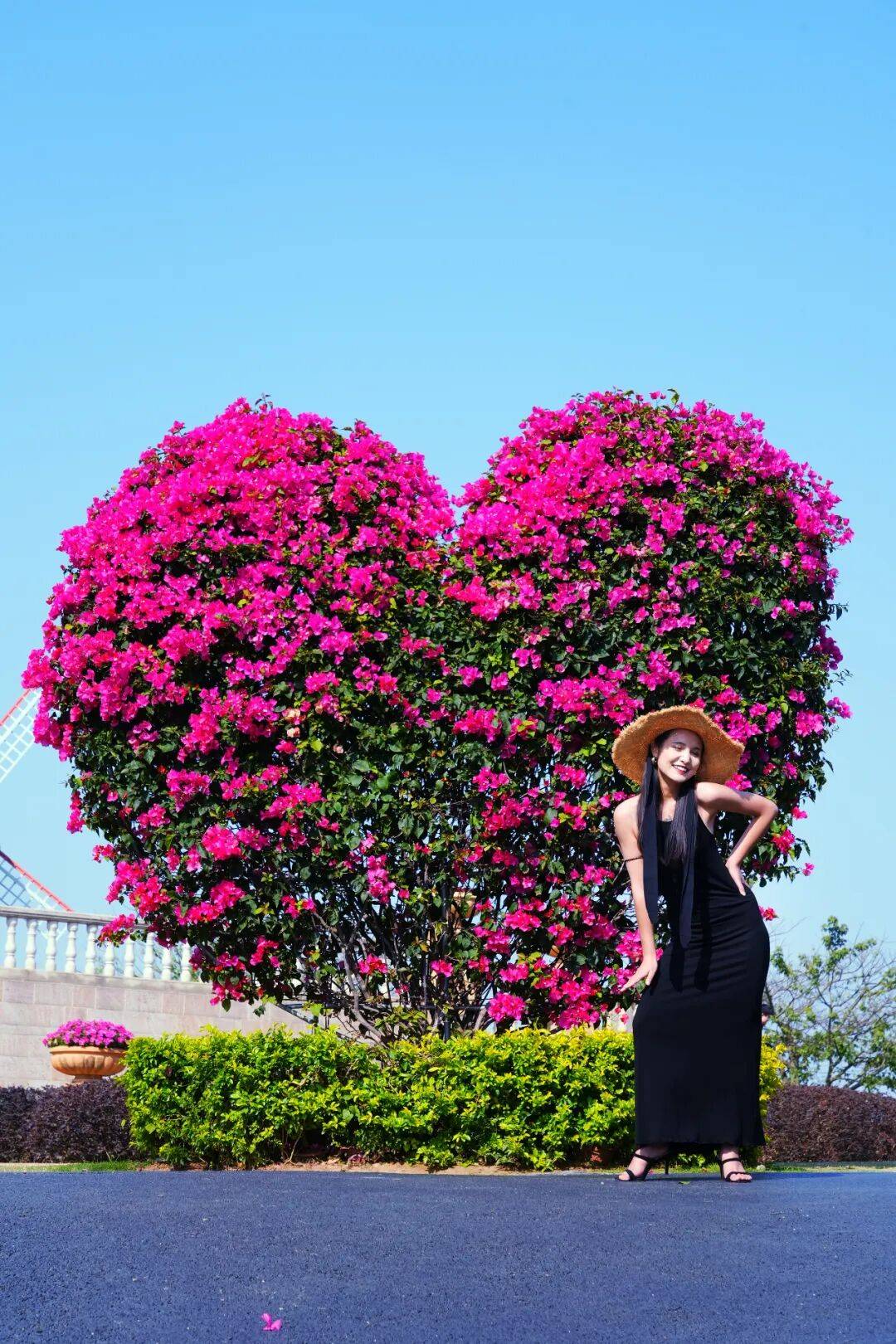 一位女孩在网红心形勒杜鹃花丛前打卡留念。据工作人员介绍,春节以来,园内花朵次第开放,吸引了游客纷至沓来,单日访问量最高达到了5万人次。