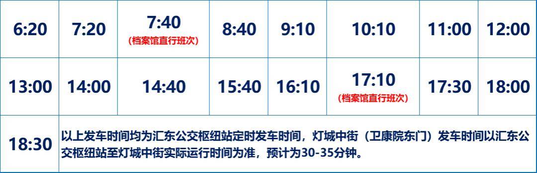(1)取消站点(档案馆直行班次不影响):市档案馆招呼站、汇兴东路招呼站、德铭路招呼站、卫康院(南门);